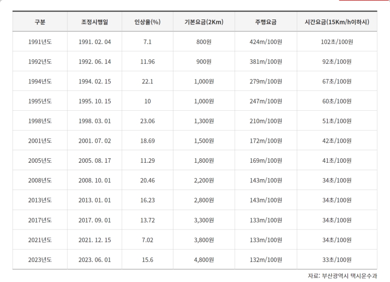 부산 택시 기본 요금