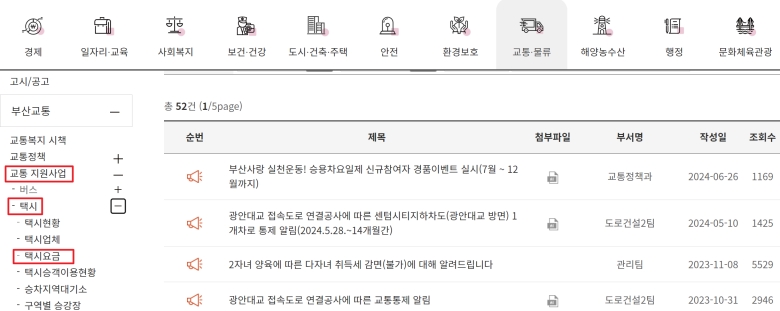 택시를 탈 때마다 요금이 어떻게 계산되는지 궁금해서 여기저기 찾아보며 헤맸던 경험이 저에게도 있었어요. 검색을 통해 '부산광역시' 홈페이지로 접속하신 뒤, 화면 위쪽에 나열된 목록 중에서 분야별정보를 선택하면 우리가 원하는 정보를 찾기 위한 첫걸음을 뗄 수 있어요.