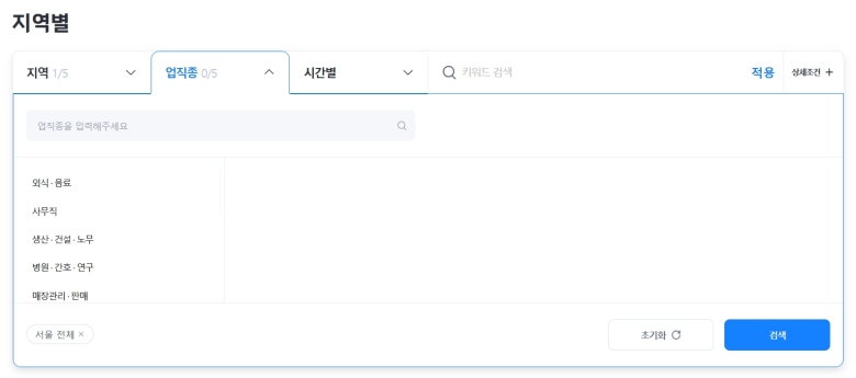 내 조건에 맞는 곳을 찾으려면 필터를 잘 쓰는 게 참 중요한데 처음에는 조금 복잡해 보일 수 있어요. 하지만 지역별 탭이나 업직종 탭을 하나씩 눌러보면서 내가 살고 있는 동네와 잘하는 일을 선택하면 필터링이 된답니다. 저는 주로 제가 이동하기 편한 서울 전체 지역을 설정해두고 정보를 확인하곤 해요.