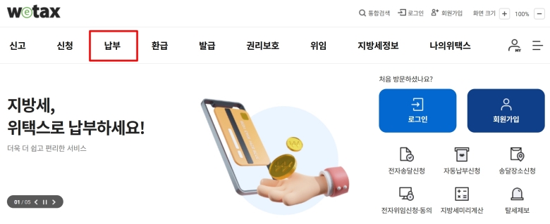 세금 고지서를 받고 막상 내려고 하면 어디서부터 시작해야 할지 막막할 때가 있죠. 우선 인터넷 검색창에 '위택스'를 입력해서 공식 홈페이지로 들어가 주세요. 화면 상단에 여러 메뉴가 보이는데, 다른 건 둘러볼 필요 없이 바로 '납부' 항목을 찾으시면 됩니다. 여기가 모든 과정의 시작점이라고 할 수 있어요.