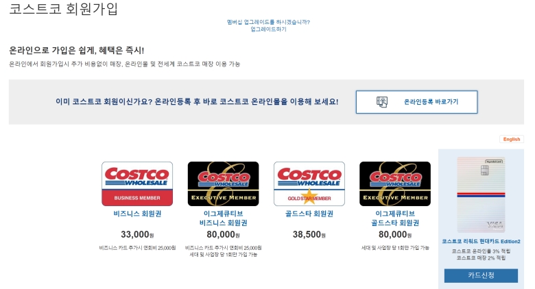 코스트코에 가득 쌓인 물건들을 보며 나도 저기서 쇼핑하고 싶다는 생각을 해보신 적 있으시죠? 이곳은 회원제로 운영되기 때문에, 쇼핑을 하려면 먼저 일종의 이용권인 회원권이 필요해요. 한 번의 연회비 결제로 일 년 동안 코스트코의 모든 혜택을 누릴 수 있는 거죠. 어떤 종류가 있고 가격은 얼마인지, 코스트코 공식 홈페이지에서 자세히 알아볼 수 있답니다.