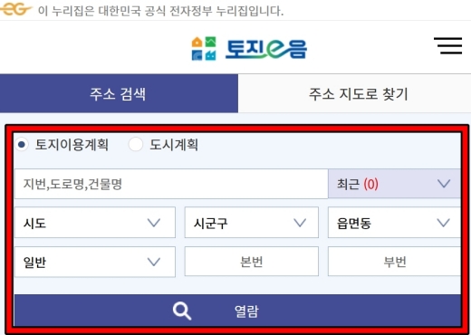 처음 무언가를 찾아보려고 할 때 화면이 복잡하면 어디서부터 시작해야 할지 막막하게 느껴질 수 있어요. 그럴 때는 '토지이음'이라는 사이트에 먼저 들어가 보세요. 홈페이지에 들어가면 바로 '주소 검색'과 '주소 지도로 찾기' 두 가지 큰 메뉴가 보일 거예요. 여기서 왼쪽에 있는 '주소 검색' 부분을 보면 됩니다. '토지이용계획'이 선택된 상태에서 알고 있는 주소의 지번이나 도로명 주소를 입력하고 바로 아래에 있는 '열람' 버튼을 누르면 해당 토지에 대한 상세한 내용을 바로 확인할 수 있어서 정말 간편해요.
