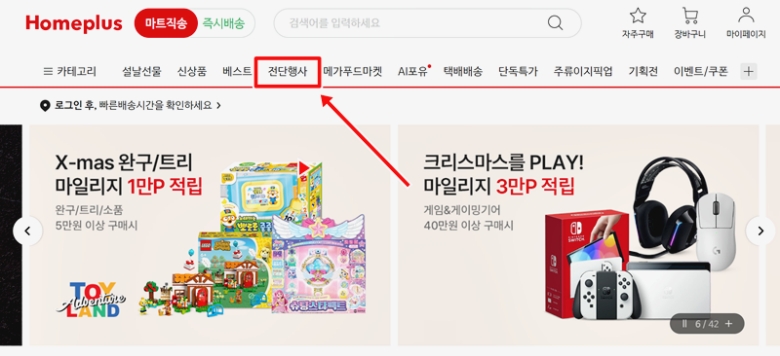 마트 좀 다녀보신 분들은 아시겠지만, 가장 먼저 눈이 가는 곳이 바로 할인 소식이잖아요. '홈플러스 온라인몰'에 딱 들어가면, 상단 메뉴들이 여러 개 보이는데 그중에서 '전단행사'라는 글자를 쉽게 찾을 수 있을 거예요. 여기가 바로 우리가 찾던 보물창고의 입구랍니다. 다른 복잡한 과정 없이 여기를 먼저 눌러주면, 이번 주에 어떤 물건들을 특별한 가격으로 만날 수 있는지 바로 확인할 수 있는 페이지로 넘어가서 정말 편해요.