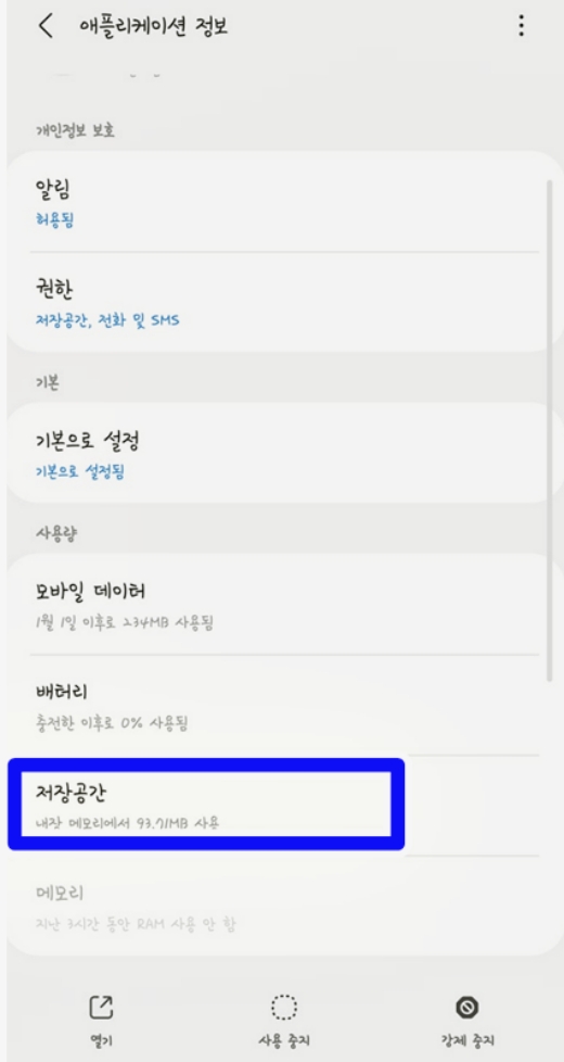'저장공간'으로 들어오면 화면 아래에 '데이터 삭제'와 '캐시 삭제'라는 두 개의 버튼이 보일 거예요. 여기서 '캐시 삭제'는 앱을 더 빠르게 실행하기 위해 저장해둔 임시 파일을 지우는 거고, '데이터 삭제'는 로그인 정보 등을 포함한 모든 데이터를 초기화하는 거예요. 우선 '캐시 삭제'를 먼저 눌러보고, 그래도 문제가 해결되지 않으면 그때 '데이터 삭제'를 진행하는 것이 좋습니다.