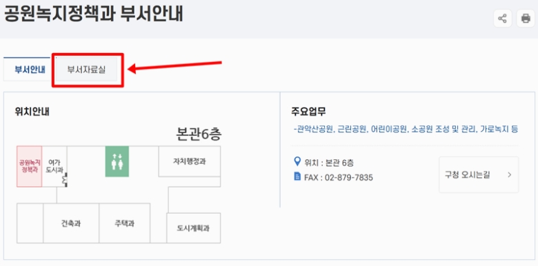 검색을 하고 나면 여러 결과가 나올 수 있는데, 당황하지 마세요. 보통 관련 부서로 바로 갈 수 있는 메뉴가 따로 표시돼요. 저 같은 경우에는 '공원녹지정책과' 이름 옆에 있는 '바로가기' 버튼을 눌렀더니 해당 부서의 전용 페이지로 한 번에 이동하더라고요. 여러 게시판을 헤맬 필요 없이, 이 버튼 하나로 원하는 곳에 쉽게 도착할 수 있어서 정말 편했어요.