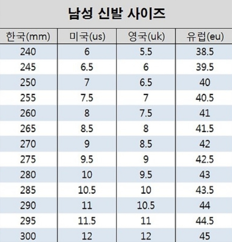 유럽 미국 신발 사이즈표